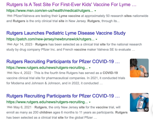 If research contracts are the goal, the university can claim success. Rutgers now boasts a new state-of-the-art facility, which has hosted COVID-19 vaccine clinical trials by Johnson & Johnson, Moderna and Pfizer, including pediatric vaccine clinical trials for children 6 months to 4 years. And it is now enrolling children (part of the “huge population” they can bring) for a clinical trial for a Lyme disease vaccine being developed by Pfizer and French vaccine maker Valneva.