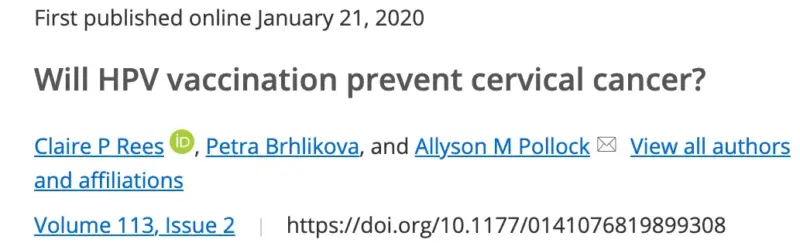 “It is uncertain whether HPV vaccination prevents cervical cancer. The trials were not designed to detect this outcome, which takes decades to develop. For most outcomes, follow-up data exist for an average of only four or five years.”